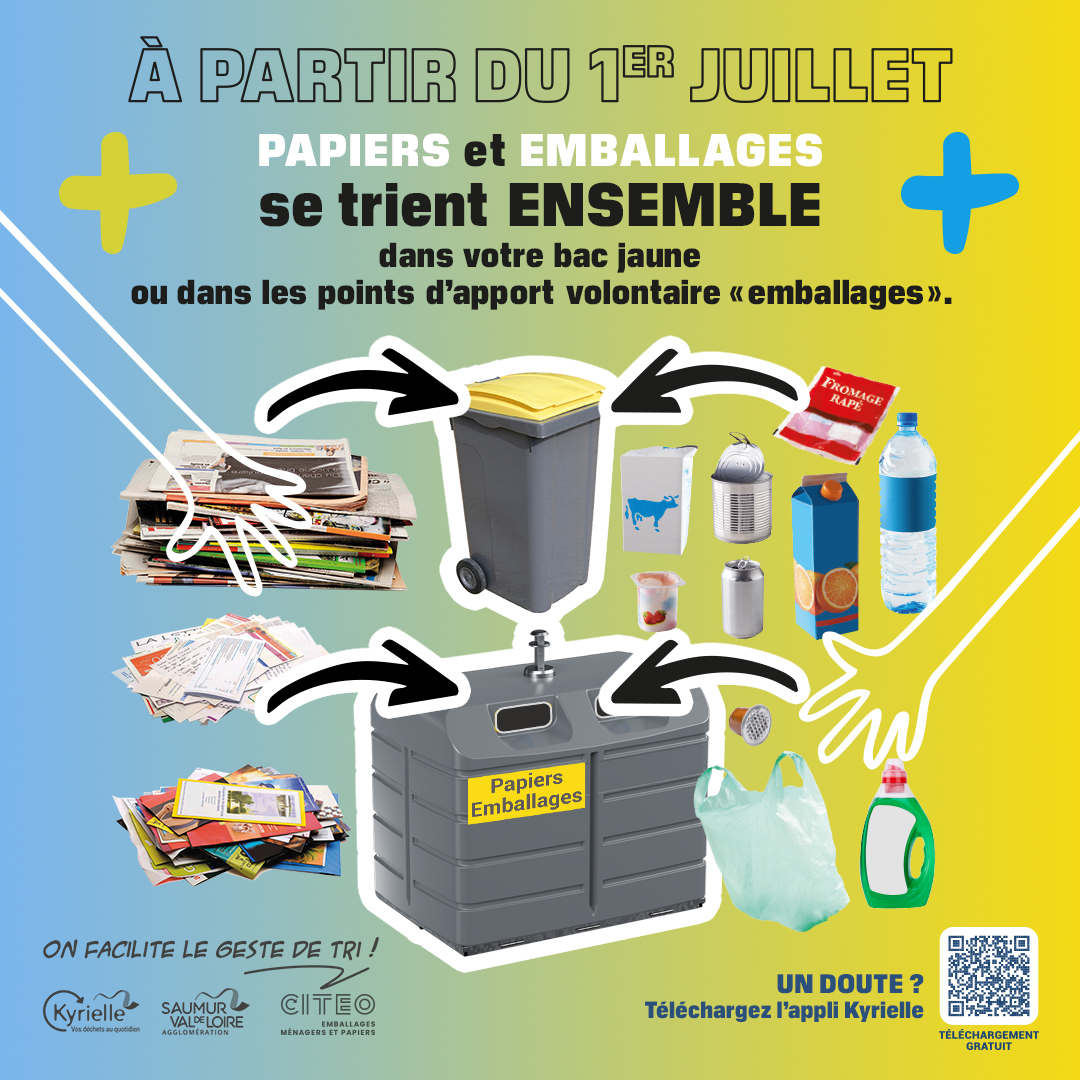 A partir du 1er juillet, les papiers vont dans le container jaune, et se mèlent aux emballages.