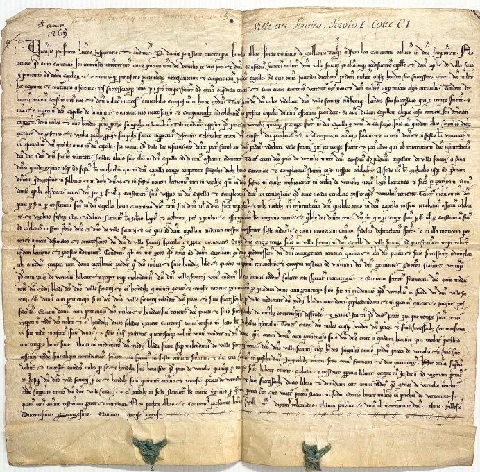 Une Charte de 1265 réglant à l'amiable un litige entre le prieur de Vernoil de la communauté de Mauléon et le seigneur de la Ville-au-Fourrier a été transcrite et traduite par M. Sylvestre Jardin, diplômé de l'école des Chartes, pour M. Mathieu Nadler, propriétaire du document