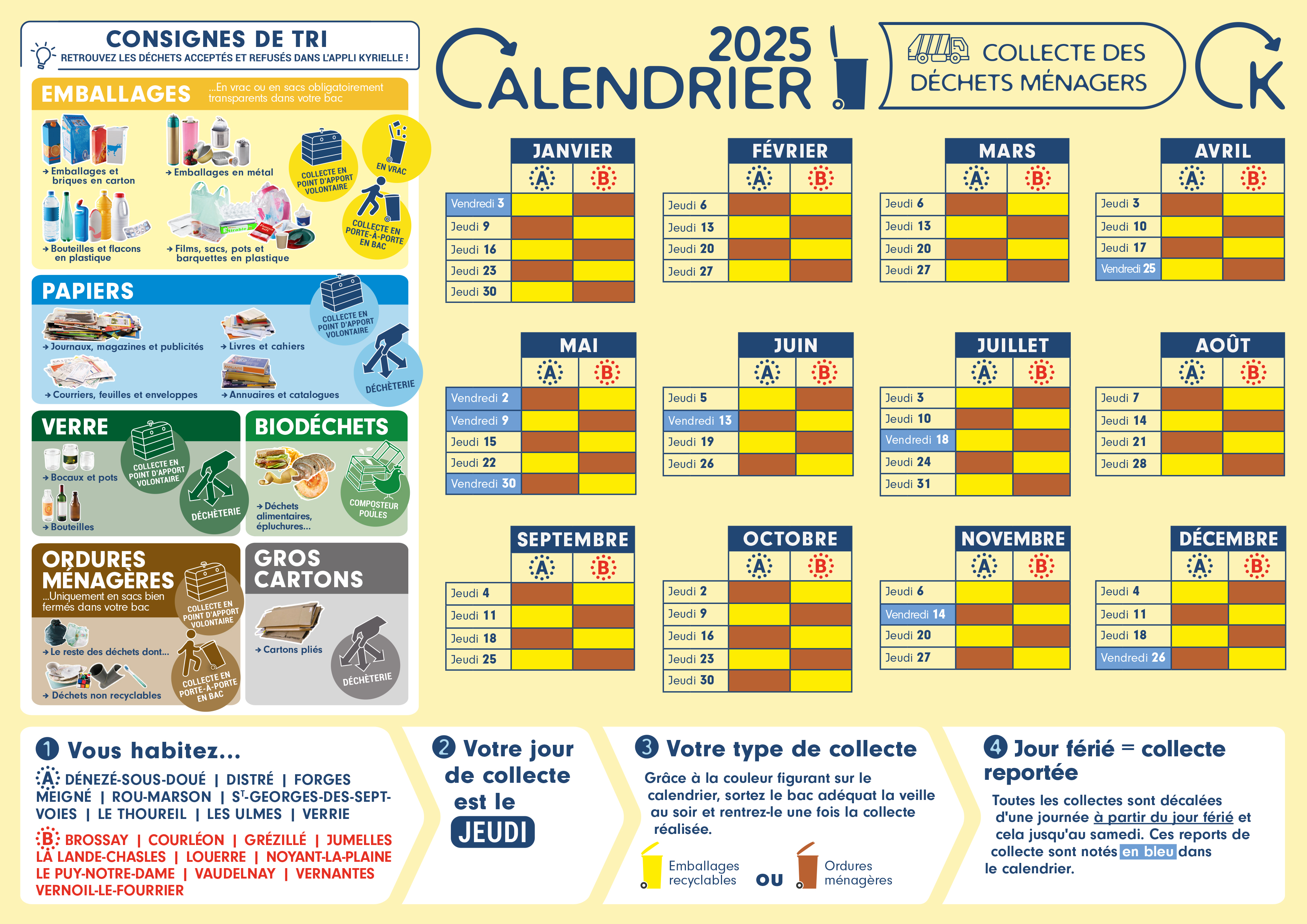 Lorsque votre jour de collecte du jeudi, tombe un jour férié, la collecte est désormais reportée au lendemain.