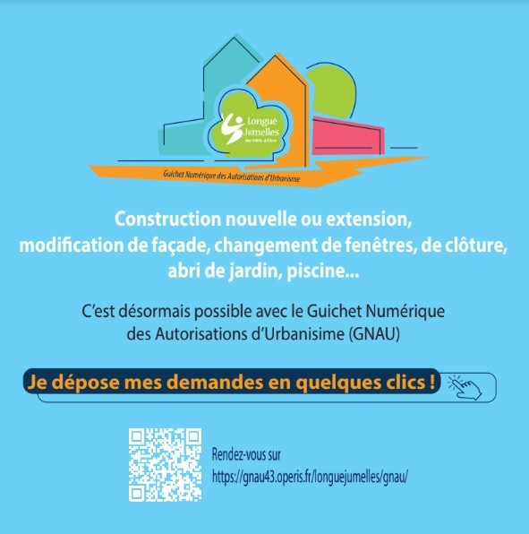 Ouverture de notre Guichet Numérique des Autorisations d’Urbanisme – GNAU, vous permettant le dépôt dématérialisé d’une demande d’autorisation d’urbanisme, à partir du 1er juin 2022, pour l’intégralité du territoire instruit par le Centre Instructeur de Longué-Jumelles