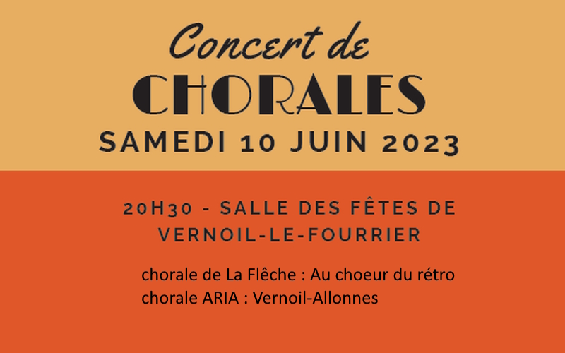 Le 10 juin à 20h30, concert de la chorale Aria de Vernoil et d'Allonnes et le choeur du Rétro de la Flèche