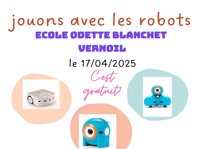 A la demande de la bibliothèque et du club informatique CIPI, Marie-Pierre Courtinier, médiatrice de L'Iimagin'r animera 2 ateliers Jouons avec les robots, le jeudi 17 avril après midi à 14h30 pour les enfants et 16 heures pour les adultes.