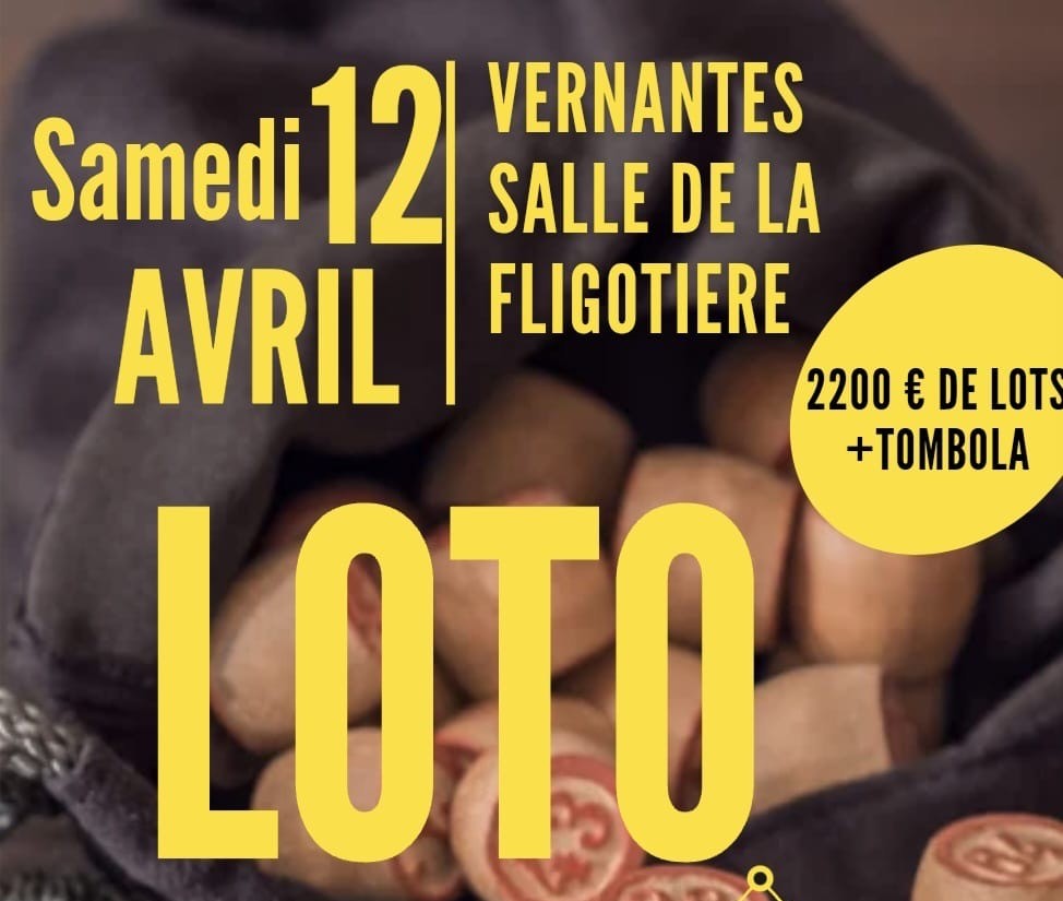 lotos du samedi 12avril à 18h30 et dimanche 13 avril après-midi organisés par le club de badminton dans la salle des fêtes de Vernantes