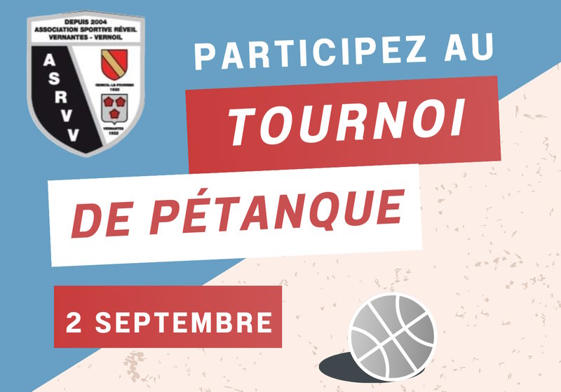 Un tournoi de pétanque est organisé par l'ASRVV Football le samedi 2 septembre 2023 au stade de Vernantes.